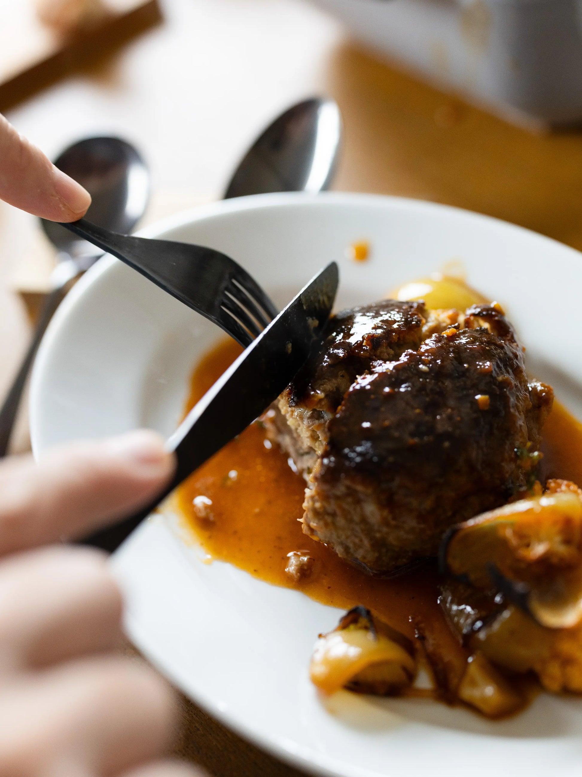 一般的なディナーナイフは、お皿の上で肉や魚をしっかりとカットするシーンを想定した重厚な作りのものが多く、ふだんの食卓で使うには華やかすぎる気がしていたのですが、このkuroのナイフは、薄くフラットで全長も短め、フォークやスプーンよりも控えめな存在感です。それゆえに、ふだん使いにとても合っていて、オムレツやパンケーキなど、軽めの朝食メニューにも合いますし、お子さんのために料理を小分けにする、といったシーンにも気軽に使えると思います。