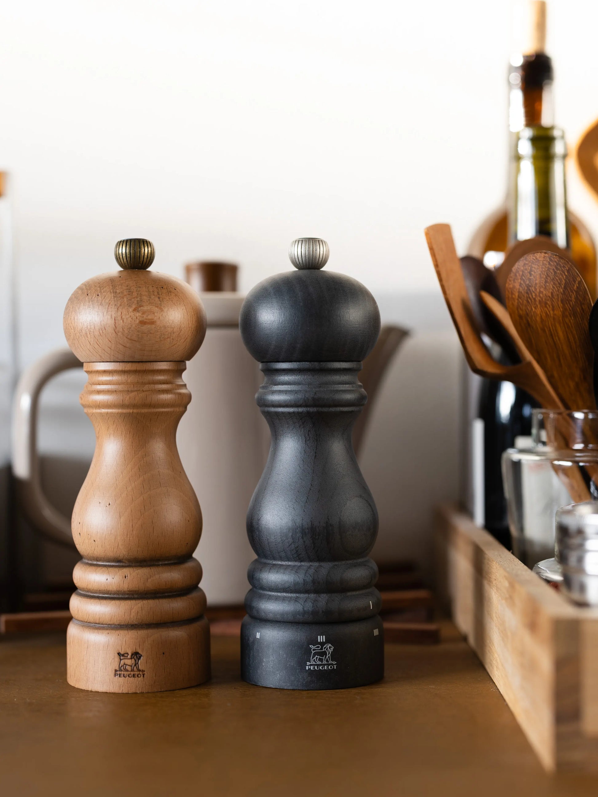 プジョーミルには、さまざまなデザイン、機能を備えたミルのラインナップが豊富にあるのですが、今回kikkakeでは、Paris(パリ)というシリーズの塩専用のソルトミルと、胡椒や花椒、コリアンダーシードなどのスパイスを挽くことができるペッパーミルの2種類をお取り扱いします。